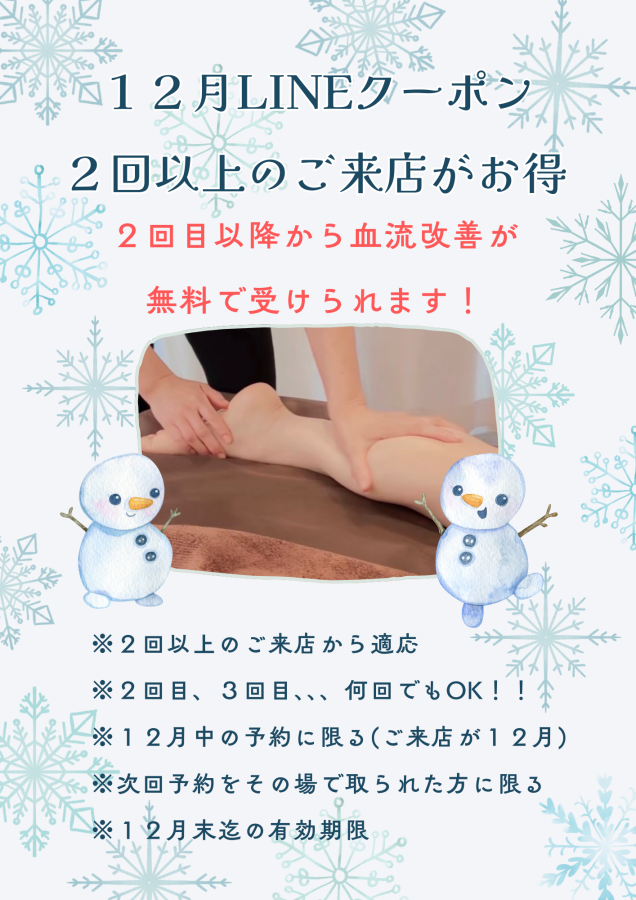 冷えや浮腫みが特に気になってくる季節! 人気オプションメニューが無料で受けられます♪(^^♪
